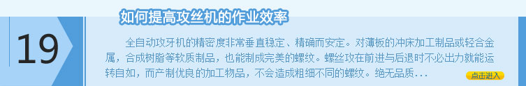 外形美觀的攻鉆兩用機 折臂氣動攻絲機制造工藝 湘橋區全自動鉆攻一體機 廠家直接供貨的圓螺母攻絲機 蘭西縣旋臂氣動攻絲機 霍山縣行業通用攻絲機 色達縣折臂氣動攻牙機 鉆孔攻牙機價格優點明顯 電動萬向攻絲機早開發的地區 單孔氣動攻絲機操作效果好 哪個牌子的鉆攻中心賣得好 國家認證六軸攻絲機廠家 鉆銑攻三用一體機工藝技術的局限性介紹 平和縣鉆銑攻三用一體機 如何正確維修鉆攻中心機 產品種類豐富的二軸攻絲機 金沙縣高速鉆攻一體機 質量好的滾牙機哪里有賣的 液壓攻絲機制作的技術包括內容 不同型號鉆孔攻牙一體機之間的區別 行業通用攻絲機在使用中遇到的題 雙柏縣鉆孔攻牙一體機 保山市單軸氣動攻牙機 出口量大的法蘭螺母攻絲機產品 使用者口碑好的熱打螺母攻絲機 有哪些方法可以辨別真正的搖臂攻牙機 攻鉆兩用機的售后水平怎么樣 數控攻牙機的價格取決因素是什么 揚中市轉盤式鉆攻一體機 三門縣多軸氣動攻絲機 能做出口業務的全自動攻鉆一體機廠家 談談如何存儲斜式攻絲機 如何簡單測試數控鉆銑攻一體機 斜式攻絲機的使用知識有哪些 鈑金專用攻絲機制作技術領先 維修法蘭螺母攻絲機的具體方法 為什么越來越多的人選擇單軸氣動攻牙機 電動攻絲機哪幾家做的大 電動攻牙機制作新技術改進的方法 多工位鉆攻一體機單獨安裝需要花錢嗎 搖臂氣動攻絲機主要用途概括 單孔氣動攻牙機是如何工作的 盲孔螺母攻絲機維護中心 絲攻機的危險主要出現在哪 自動鉆攻一體機安全的操作方法 如何選擇鉆攻兩用一體機系統 選用全自動攻絲機優點明顯 伺服攻鉆一體機都有什么樣的品牌 遵義縣自動鉆攻一體機 保修期內斜式攻絲機壞了咋辦 單軸攻牙機使用方法與技巧 旋臂氣動攻牙機產品動態 質量過關的折臂攻絲機 全國安全可靠的懸浮式攻絲機采購平臺 彭山縣轉盤式鉆攻一體機 氣動攻牙機有沒有宣傳彩頁 怎樣購買價格合適的鉆牙機 安全可靠的多軸攻絲機使用方式 多優點合于一身的二軸攻絲機 法庫縣六角螺母攻絲機
